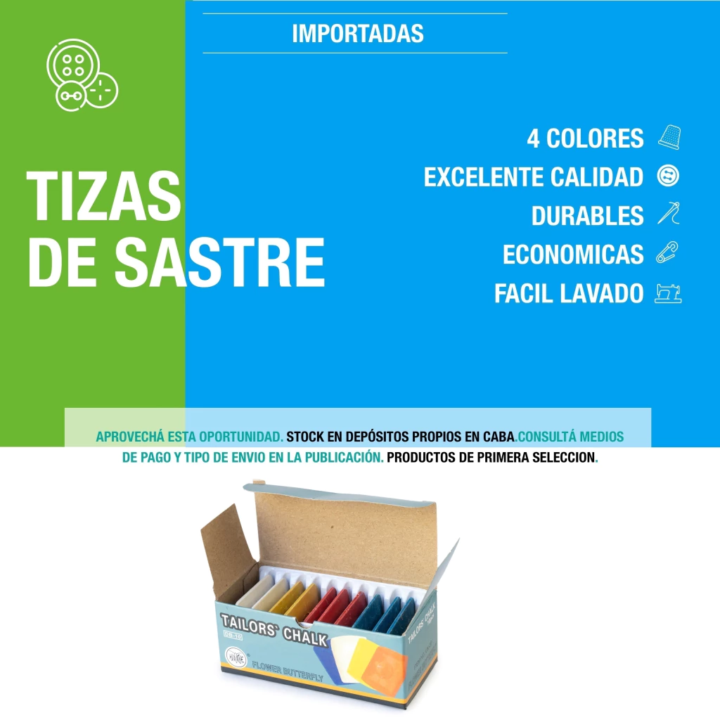 Estas tizas, diseñadas especialmente para modistas, son ideales para marcar patrones y trazos en tus telas, asegurando precisión y claridad en cada corte. Con un práctico set de 10 unidades en colores variados, tendrás la flexibilidad que necesitás para trabajar con diferentes tipos de telas y colores.